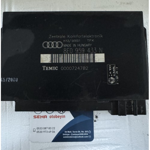8E0959433N Audi A4 uyumlu merkezi konfor kontrol modülü. Orijinal TEMIC üretimi, sorunsuzdur